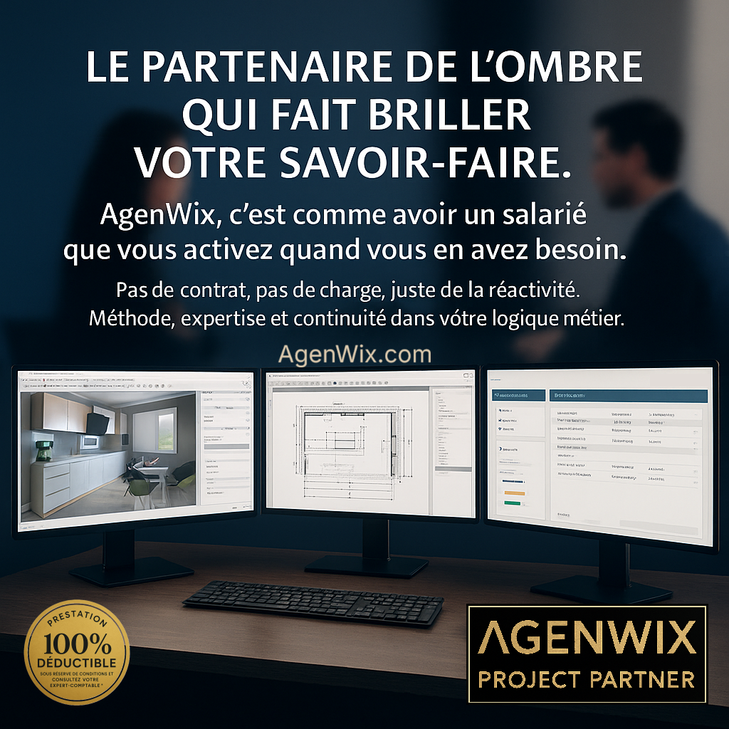 En collaborant avec AgenWix, vous accédez à des solutions externalisées prêtes à l’emploi pour vos projets professionnels. Ensemble, transformons vos besoins techniques en résultats concrets.